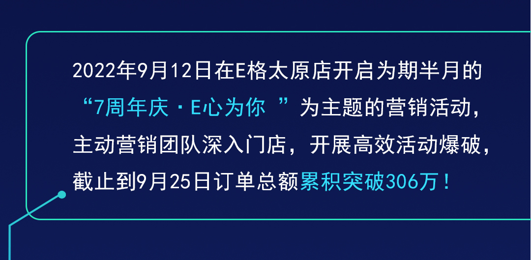 “名商、名店、名導”扶商賦能 E格太原店7周年慶,業(yè)績炸裂訂單累積突破306萬!