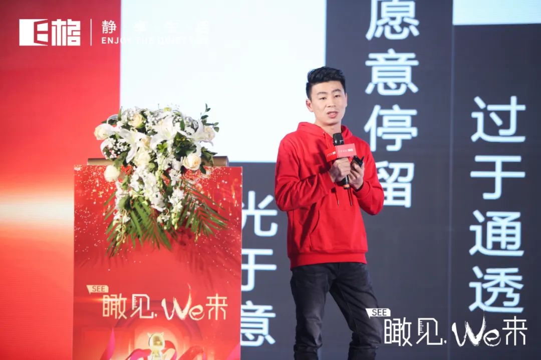E格特邀泉州啟凡空間設(shè)計創(chuàng)始人、設(shè)計總監(jiān)王金澤先生上臺分享概念店的設(shè)計思潮,讓我們共同見證以彼埃·蒙德里安“紅黃藍(lán)構(gòu)圖”為設(shè)計理念下的空間交疊與裝置藝術(shù)。