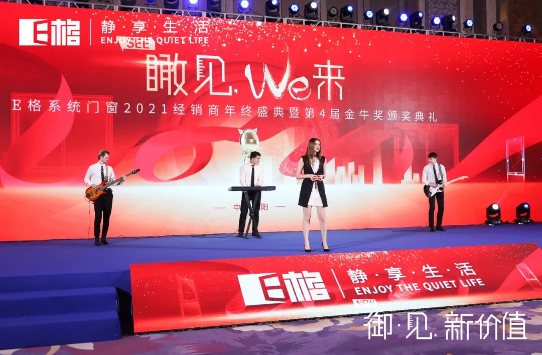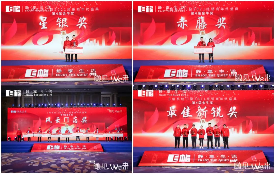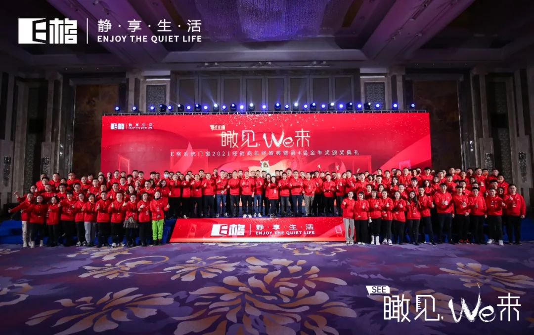 2022年2月25日下午,精彩繼續(xù)。瞰見,we來 E格靜音系統(tǒng)門窗2021經(jīng)銷商年終盛典暨第4屆金牛獎頒獎典禮拉開帷幕。